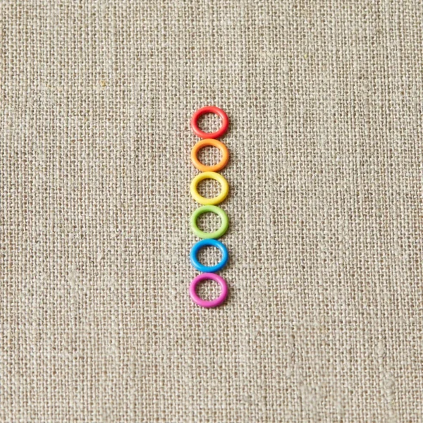 Boîte de 60 anneaux marqueurs multicolors, de la marque CocoKnits. Avec leur petit diamètre, ils sont parfaits pour tricoter avec des petites aiguilles, jusqu’à 4 mm.